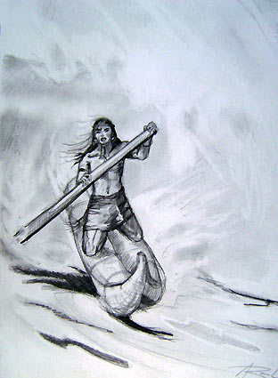 Os Moches, peruanos da era pré-colombiana remavam ajoelhados e em pé sobre seus 'caballitos de totora' há séculos
